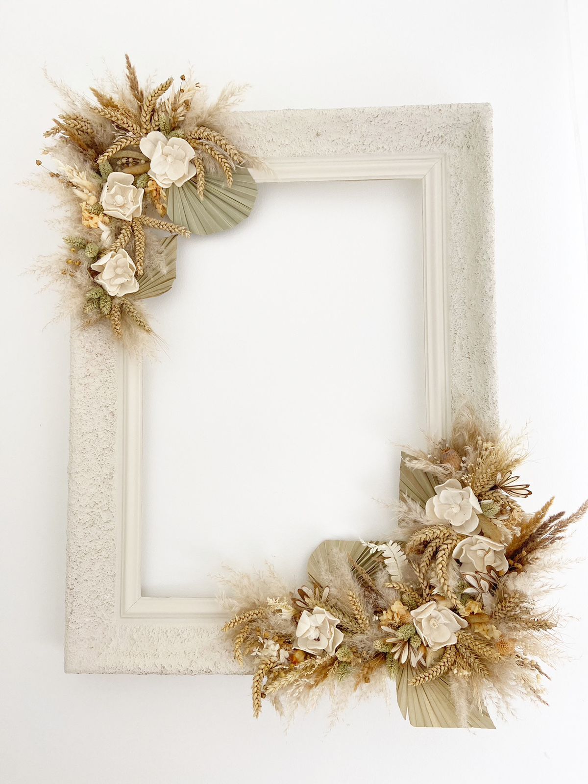 De la couronne de fleurs séchées en passant par de jolis paniers chinés auxquels j’y ajoute ma patte, puis par la rénovation de cadres anciens et même de meubles tels que des bancs, des commodes, des buffets... du sur-mesure selon vos envies pour chacun de ces univers !